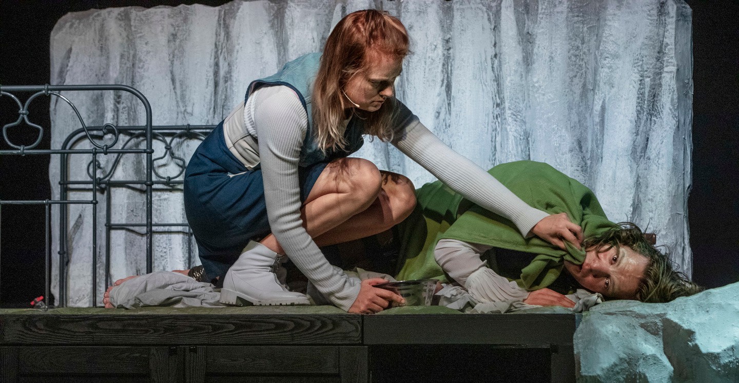 Regisseur Moniek Merkx lijkt de emotionele zwaarte vooral aan het begin van haar voorstelling te hebben willen vermijden. Actrice Rosa van Leeuwen, die Lampje speelt, draagt hieraan bij door een wel erg naïef en wereldvreemd meisje neer te zetten. Niet volledig emotieloos want als zij zegt ‘ik wil gewoon naar mijn vader’, net nadat hij haar heeft geslagen, snijdt dat wel degelijk door je ziel. Maar meestentijds huppelt ze luchtig en onaangedaan rond door het ingenieuze, multifunctionele decor (ontwerp Sanne Danz). Onafhankelijk maar ook net iets te onaantastbaar om echt met haar mee te kunnen leven.